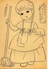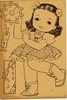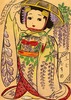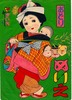 きいちは自身が日本舞踊を習い名取までになっていましたので、日本舞踊を題材にしたぬりえを数多く描いています。左の絵は「藤娘」、右の絵は「三面子守」です。私もすこし日本舞踊を習いましたので、着物の中で、足をどのように曲げているか、腕はどのようになっているか、想像することができますが、きいちは本当に踊りを知って描いていることがわかります。