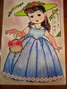 ブルー系のドレスに宝石がキラキラしています。リボンやレースの帽子やバッグの飾り方が素敵ですね。