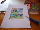 シャイトさんからは、デザインした紙の絵にスイスの伝統的なスティッフリー(stupferli)という先のとがった穴あけのピックで穴をあけ、糸で縫って、その糸の間に色を塗った「絵」をプレゼントしていただきました。これも考えるとぬりえのようなものだと思いました。
