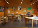 玄関ロビーや広い部屋までの廊下部分などに、子ども達がつくった作品がずらっと展示されていて、アートに関心が高いことが感じられました。