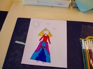 子どもたちは、自分の好きなように、家と人を描いていきます。ある女の子は人物の表現は、お姫様を描いていました。綺麗に色も塗って、少しもはみ出していません。ぬりえが好きと思われました。